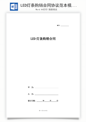 风云办公提供LED路灯购销合同协议范本模板签约版Word模板下载,格式为 doc,一共6页,作品中文字及图均可以修改和编辑,图片更改请在作品中右键图片并更换,文字修改请直接点击文字进行修改。更多精彩合同协议Word模板,尽在风云办公。
