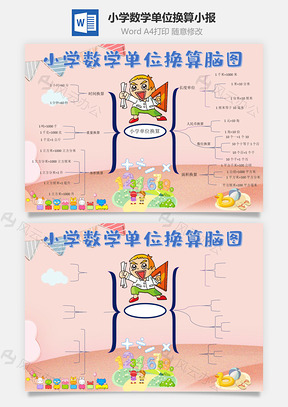 小学数学单位换算脑图人民币手抄报Word模板