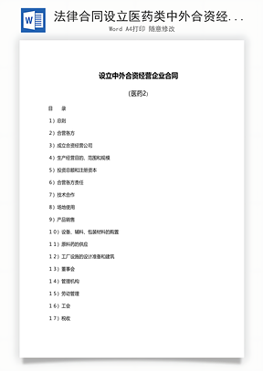法律合同设立医药类中外合资经营企业合同范文Word模板