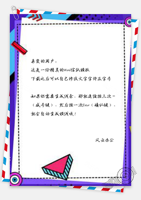 信纸创意波普风紫色几何多边形Word模板