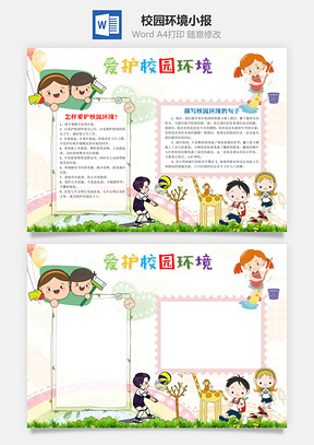 手抄报模板爱护校园环境word小报手抄报Word模板推荐