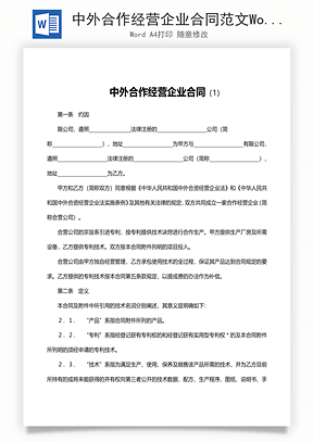 风云办公提供中外农副产品合作经营合同范文Word模板下载,格式为 doc,一共14页,作品中文字及图均可以修改和编辑,图片更改请在作品中右键图片并更换,文字修改请直接点击文字进行修改。更多精彩合同协议Word模板,尽在风云办公。