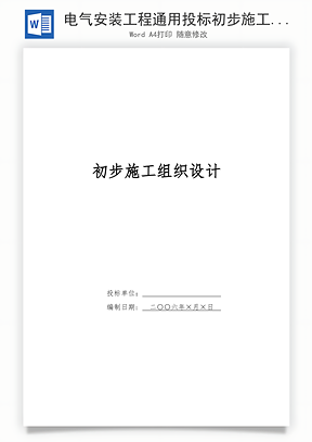 风云办公提供工程通用投标初步施工组织Word模板下载,格式为 word,一共1页,作品中文字及图均可以修改和编辑,图片更改请在作品中右键图片并更换,文字修改请直接点击文字进行修改。更多精彩工程管理Word模板,尽在风云办公。