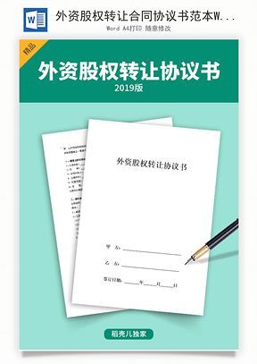 风云办公提供外资股权转让合同协议书范本Word模板下载,格式为 doc,一共5页,作品中文字及图均可以修改和编辑,图片更改请在作品中右键图片并更换,文字修改请直接点击文字进行修改。更多精彩合同协议Word模板,尽在风云办公。