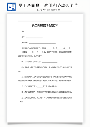 风云办公提供企业试用期劳动合同Word模板下载,格式为 docx,一共5页,作品中文字及图均可以修改和编辑,图片更改请在作品中右键图片并更换,文字修改请直接点击文字进行修改。更多精彩合同协议Word模板,尽在风云办公。