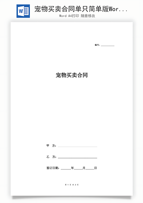 宠物买卖合同单只简单版Word模板