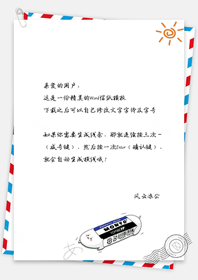 风云办公提供小清新太阳彩虹信纸Word模板下载,格式为 docx,一共1页,作品中文字及图均可以修改和编辑,图片更改请在作品中右键图片并更换,文字修改请直接点击文字进行修改。更多精彩信纸Word模板,尽在风云办公。