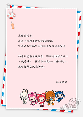 信纸小清新风铃手绘阿狸小伙伴Word模板推荐