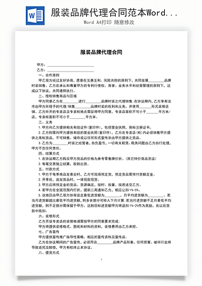 服装品牌代理合同范本Word模板