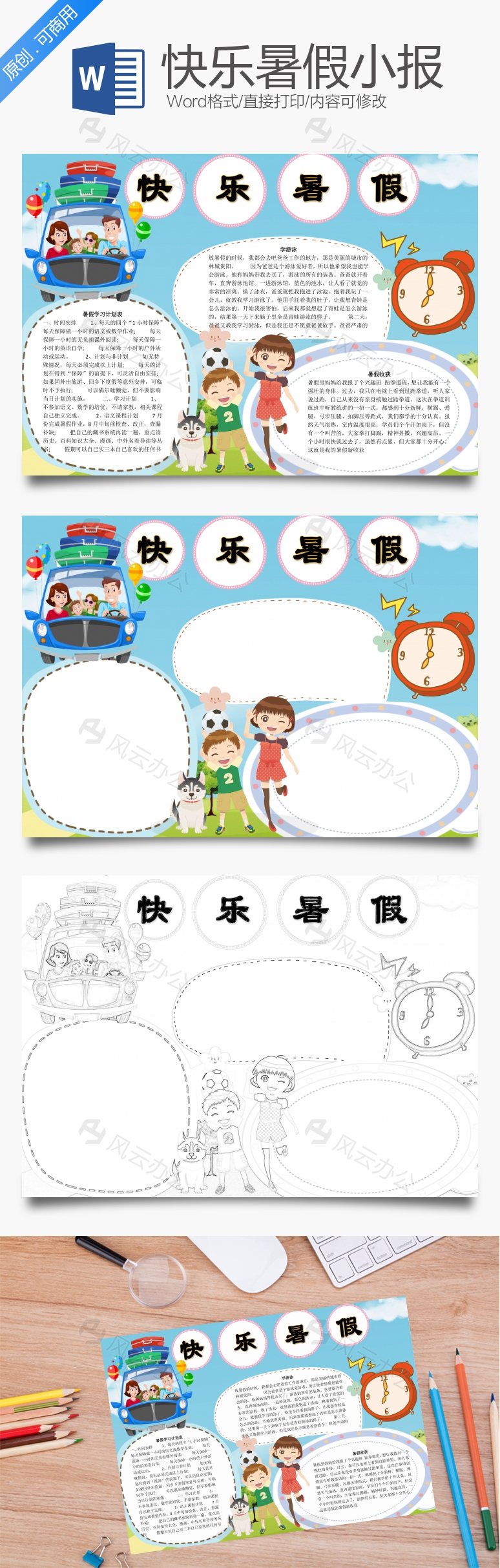 风云办公提供快乐暑假word小报手抄报Word模板下载,格式为 docx,一共1页,作品中文字及图均可以修改和编辑,图片更改请在作品中右键图片并更换,文字修改请直接点击文字进行修改。更多精彩寒暑假手抄报Word模板,尽在风云办公。