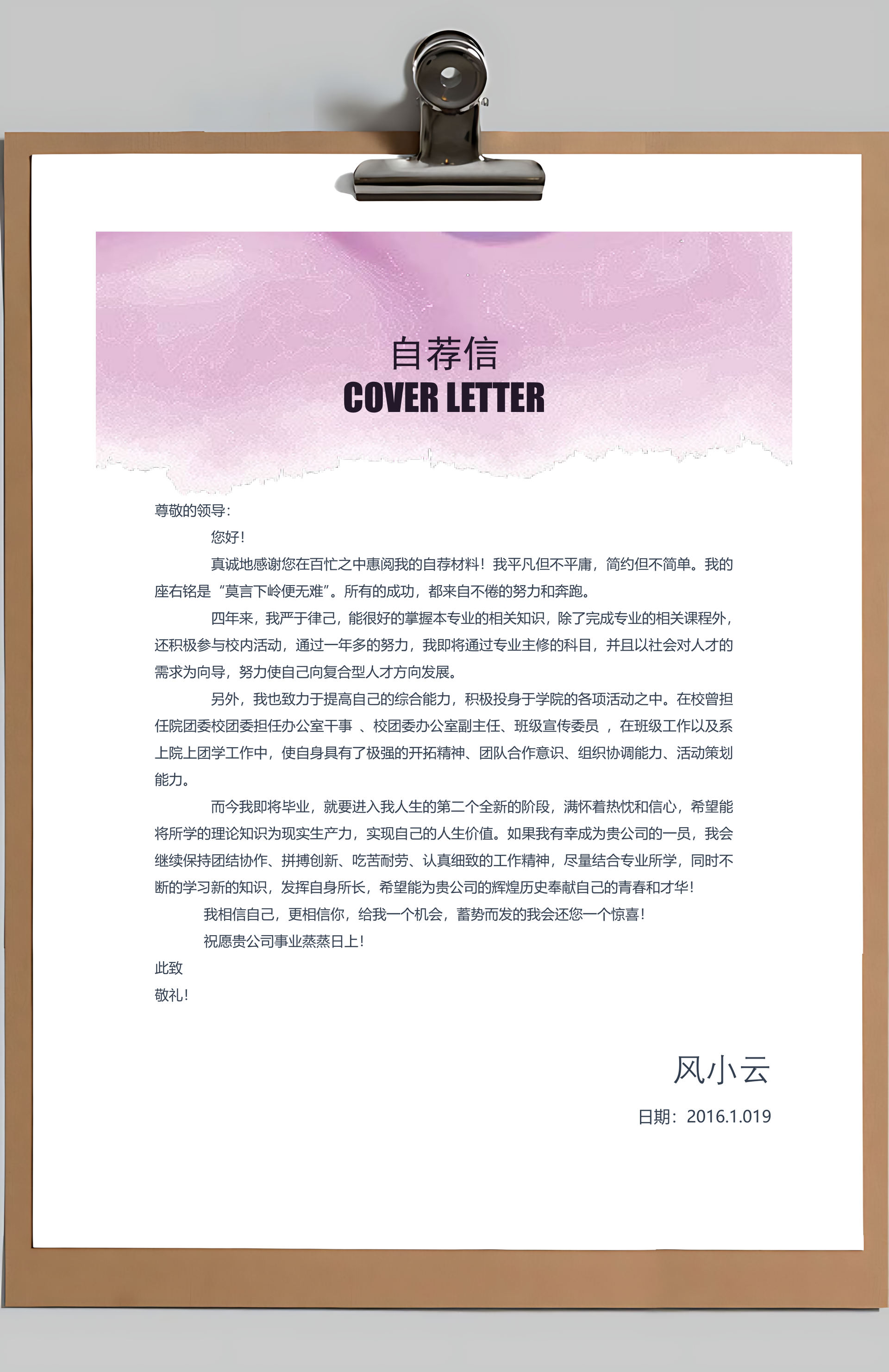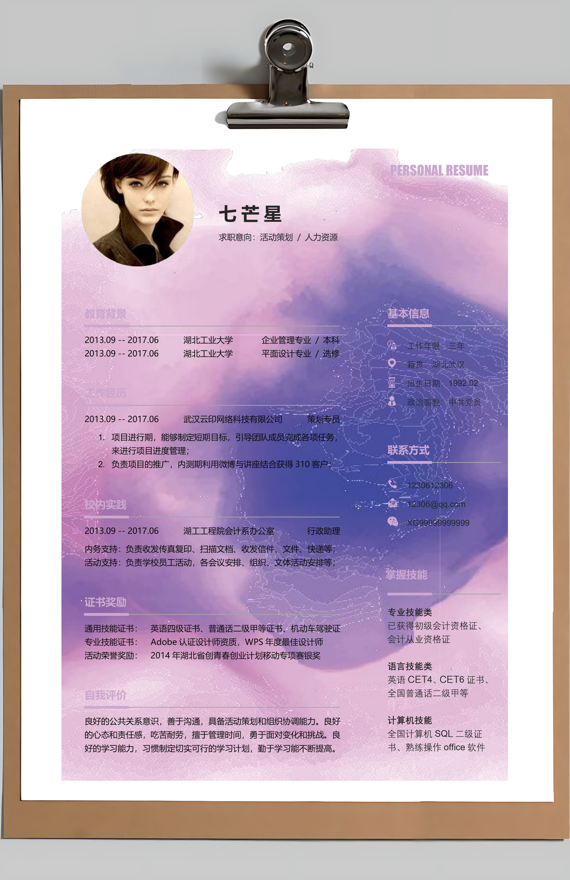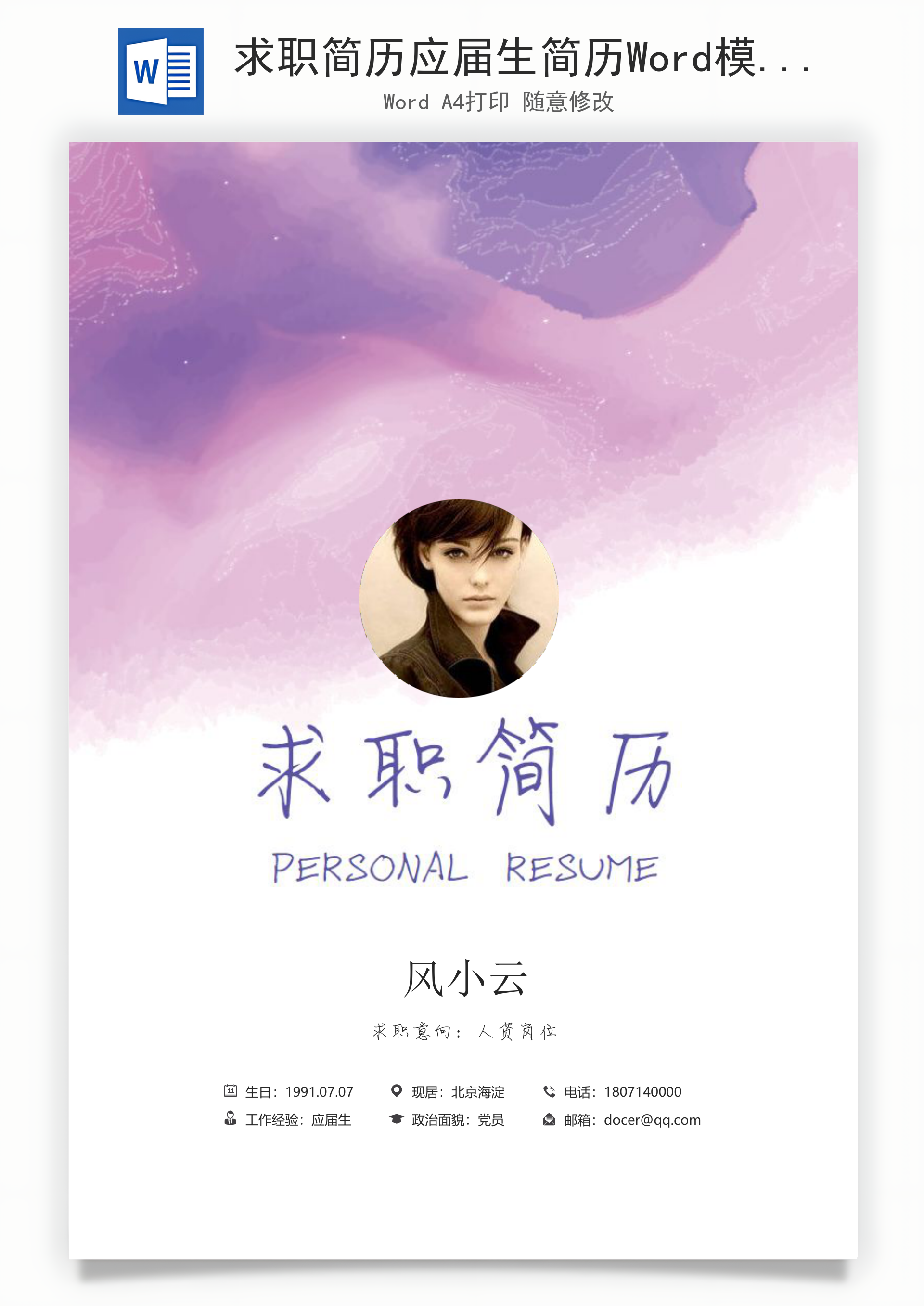 风云办公提供求职简历应届生简历Word模板下载,格式为 docx,一共4页,作品中文字及图均可以修改和编辑,图片更改请在作品中右键图片并更换,文字修改请直接点击文字进行修改。更多精彩应届生简历Word模板,尽在风云办公。