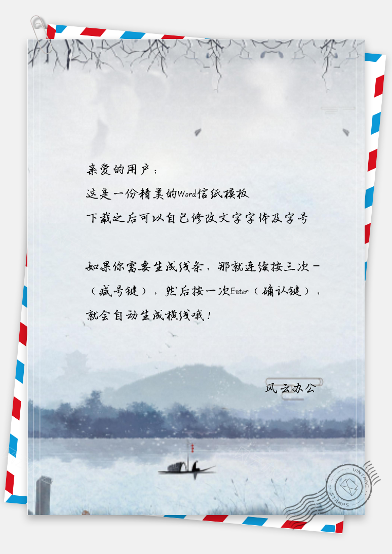 信纸小清新唯美江舟寒江雪Word模板推荐