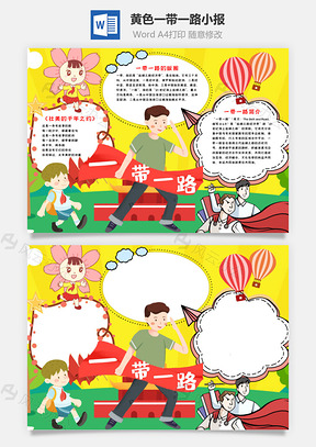 风云办公提供黄色卡通一带一路小报手抄报Word模板下载,格式为 ,一共1页,作品中文字及图均可以修改和编辑,图片更改请在作品中右键图片并更换,文字修改请直接点击文字进行修改。更多精彩手抄报/小报Word模板,尽在风云办公。
