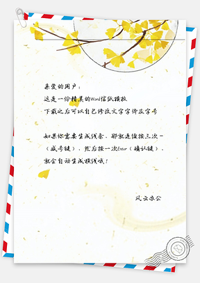 风云办公提供古风屋顶树枝鸟信纸Word模板下载,格式为 docx,一共1页,作品中文字及图均可以修改和编辑,图片更改请在作品中右键图片并更换,文字修改请直接点击文字进行修改。更多精彩信纸Word模板,尽在风云办公。