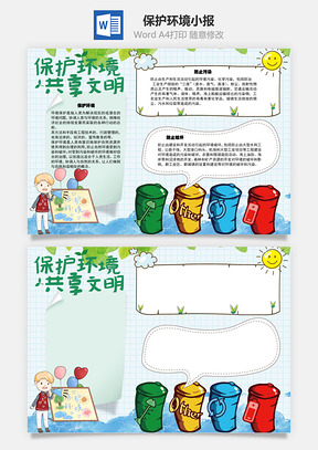 保护环境手抄报word小报手抄报Word模板,