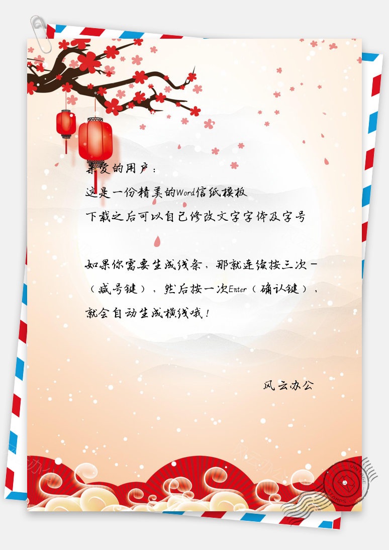 通用信纸卡片贺卡请柬剪纸节日春节中国红Word模板