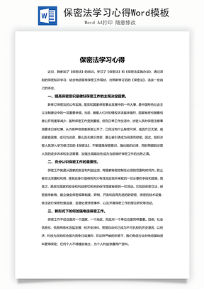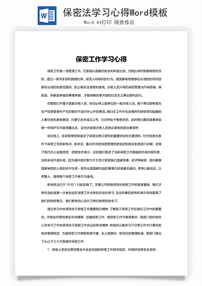 风云办公提供保密法学习心得体会Word模板下载,格式为 word,一共1页,作品中文字及图均可以修改和编辑,图片更改请在作品中右键图片并更换,文字修改请直接点击文字进行修改。更多精彩工作范文Word模板,尽在风云办公。