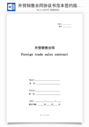 风云办公提供进出口外贸销售合同协议书范本通用版Word模板下载,格式为 doc,一共5页,作品中文字及图均可以修改和编辑,图片更改请在作品中右键图片并更换,文字修改请直接点击文字进行修改。更多精彩合同协议Word模板,尽在风云办公。