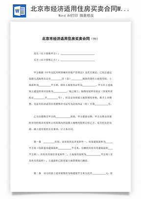 风云办公提供北京市经济适用住房预售合同Word模板下载,格式为 doc,一共6页,作品中文字及图均可以修改和编辑,图片更改请在作品中右键图片并更换,文字修改请直接点击文字进行修改。更多精彩合同协议Word模板,尽在风云办公。
