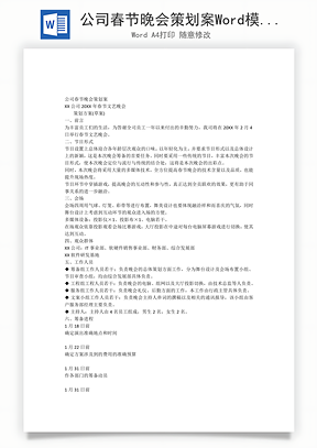 风云办公提供公司春节文艺晚会筹划方案Word模板下载,格式为 word,一共1页,作品中文字及图均可以修改和编辑,图片更改请在作品中右键图片并更换,文字修改请直接点击文字进行修改。更多精彩人力资源Word模板,尽在风云办公。