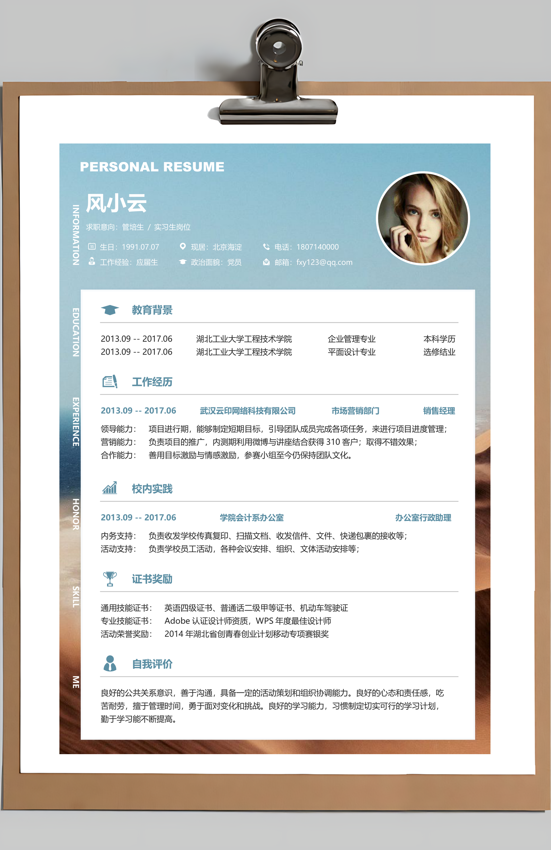 风云办公提供求职简历应届生简历Word模板下载,格式为 docx,一共3页,作品中文字及图均可以修改和编辑,图片更改请在作品中右键图片并更换,文字修改请直接点击文字进行修改。更多精彩应届生简历Word模板,尽在风云办公。