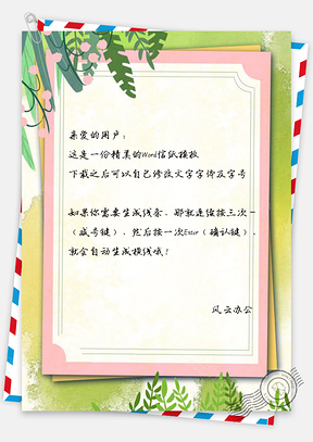 信纸小清新唯美水彩绿叶手绘信笺Word模板