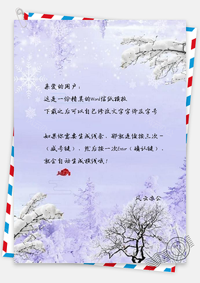 风云办公提供信纸清新冬季下雪雪人Word模板下载,格式为 docx,一共1页,作品中文字及图均可以修改和编辑,图片更改请在作品中右键图片并更换,文字修改请直接点击文字进行修改。更多精彩信纸Word模板,尽在风云办公。