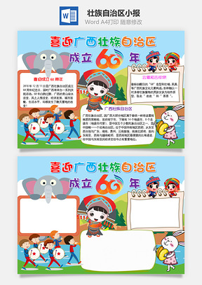 儿童卡通喜迎广西壮族自治区成立60周年Word模板