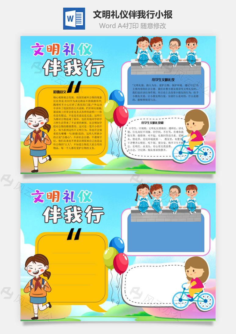 风云办公提供文明礼仪伴我行礼仪歌手抄报Word模板下载,格式为 ,一共1页,作品中文字及图均可以修改和编辑,图片更改请在作品中右键图片并更换,文字修改请直接点击文字进行修改。更多精彩手抄报/小报Word模板,尽在风云办公。