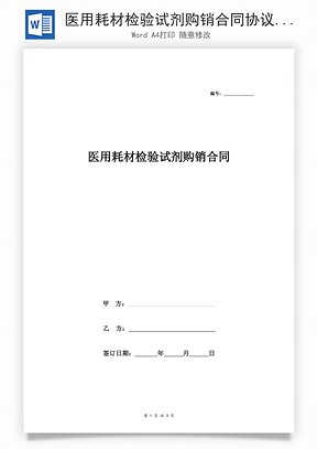 风云办公提供医疗机构医用耗材、检验试剂购销合同协议Word模板下载,格式为 doc,一共3页,作品中文字及图均可以修改和编辑,图片更改请在作品中右键图片并更换,文字修改请直接点击文字进行修改。更多精彩合同协议Word模板,尽在风云办公。