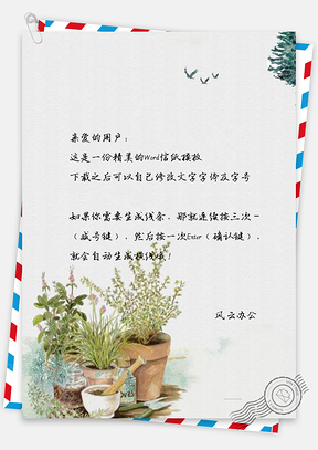 信纸小清新手绘花儿盆栽Word模板