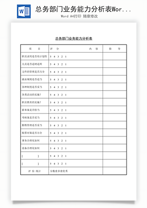 风云办公提供营业部门业务能力分析Word模板下载,格式为 word,一共1页,作品中文字及图均可以修改和编辑,图片更改请在作品中右键图片并更换,文字修改请直接点击文字进行修改。更多精彩人力资源Word模板,尽在风云办公。