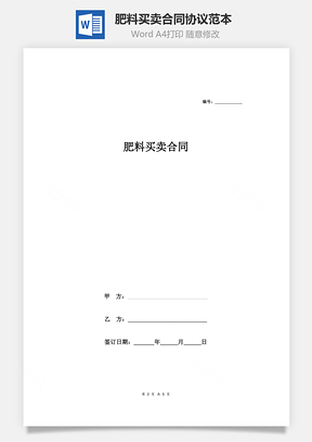 风云办公提供肥料买卖合同协议范本模板通用版Word模板下载,格式为 doc,一共4页,作品中文字及图均可以修改和编辑,图片更改请在作品中右键图片并更换,文字修改请直接点击文字进行修改。更多精彩合同协议Word模板,尽在风云办公。