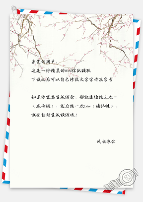 风云办公提供粉色小清新水彩樱花信纸Word模板下载,格式为 docx,一共1页,作品中文字及图均可以修改和编辑,图片更改请在作品中右键图片并更换,文字修改请直接点击文字进行修改。更多精彩信纸Word模板,尽在风云办公。