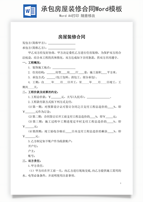 风云办公提供房屋装修合同银行贷款Word模板下载,格式为 doc,一共3页,作品中文字及图均可以修改和编辑,图片更改请在作品中右键图片并更换,文字修改请直接点击文字进行修改。更多精彩合同协议Word模板,尽在风云办公。