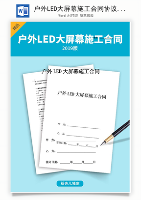 户外LED大屏幕施工合同协议书范本Word模板,