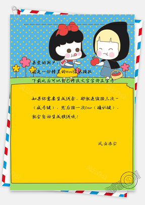 信纸文艺风小清新手绘可爱女孩背景Word模板