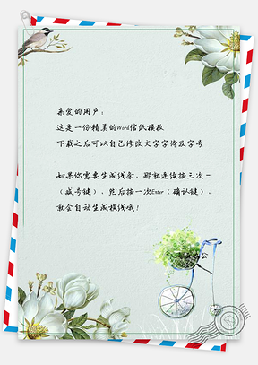 信纸小清新文艺手绘绿叶单车植物Word模板