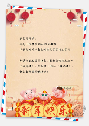 元旦节信纸金猪纳福新年快乐Word模板推荐