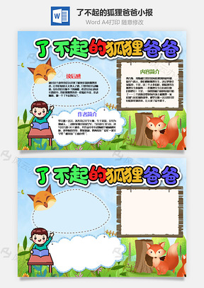 了不起的狐狸爸爸word小报手抄报Word模板推荐