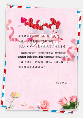 风云办公提供520爱情信纸Word模板下载,格式为 docx,一共1页,作品中文字及图均可以修改和编辑,图片更改请在作品中右键图片并更换,文字修改请直接点击文字进行修改。更多精彩信纸Word模板,尽在风云办公。