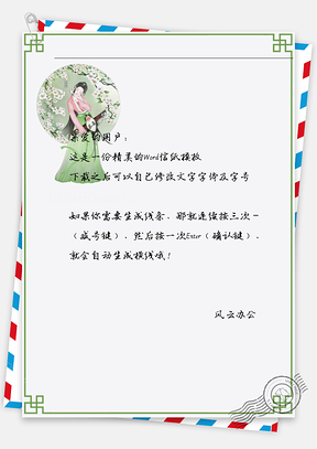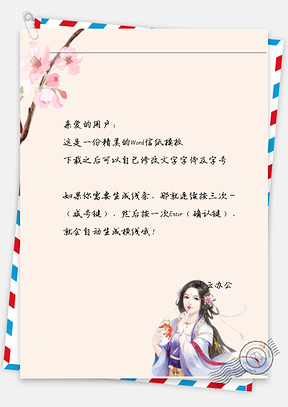 风云办公提供古风女子看男子信纸Word模板下载,格式为 docx,一共1页,作品中文字及图均可以修改和编辑,图片更改请在作品中右键图片并更换,文字修改请直接点击文字进行修改。更多精彩信纸Word模板,尽在风云办公。