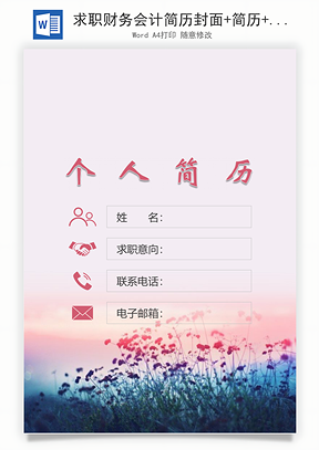 求职财务会计简历封面+简历+自荐信Word模板