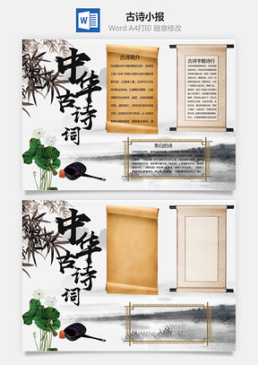 传统诗歌文学word小报手抄报Word模板,