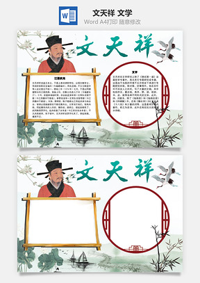 文天祥文学手抄报Word模板,