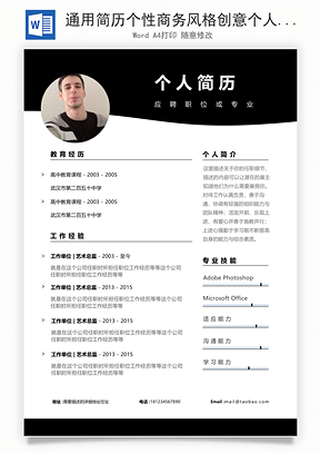 通用简历极简个性黑白创意个人简历模板和求职信Word模板