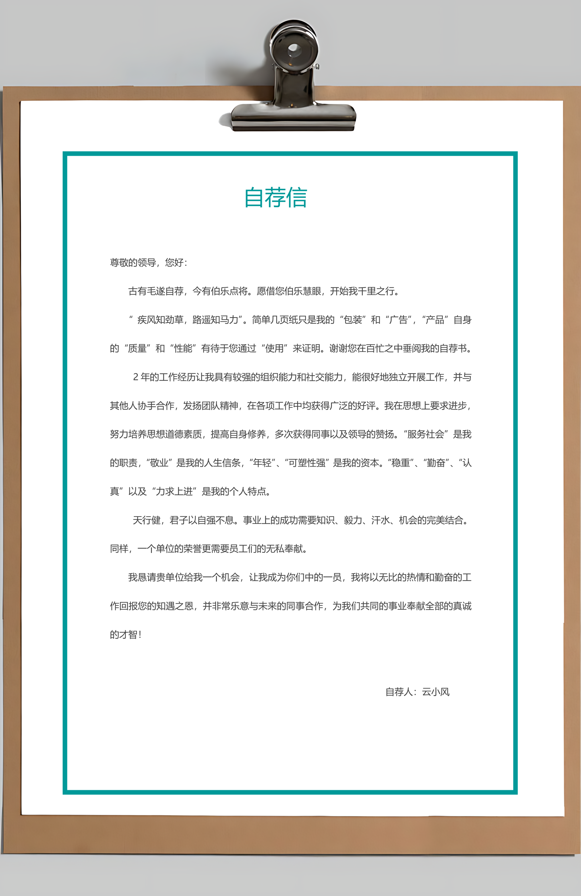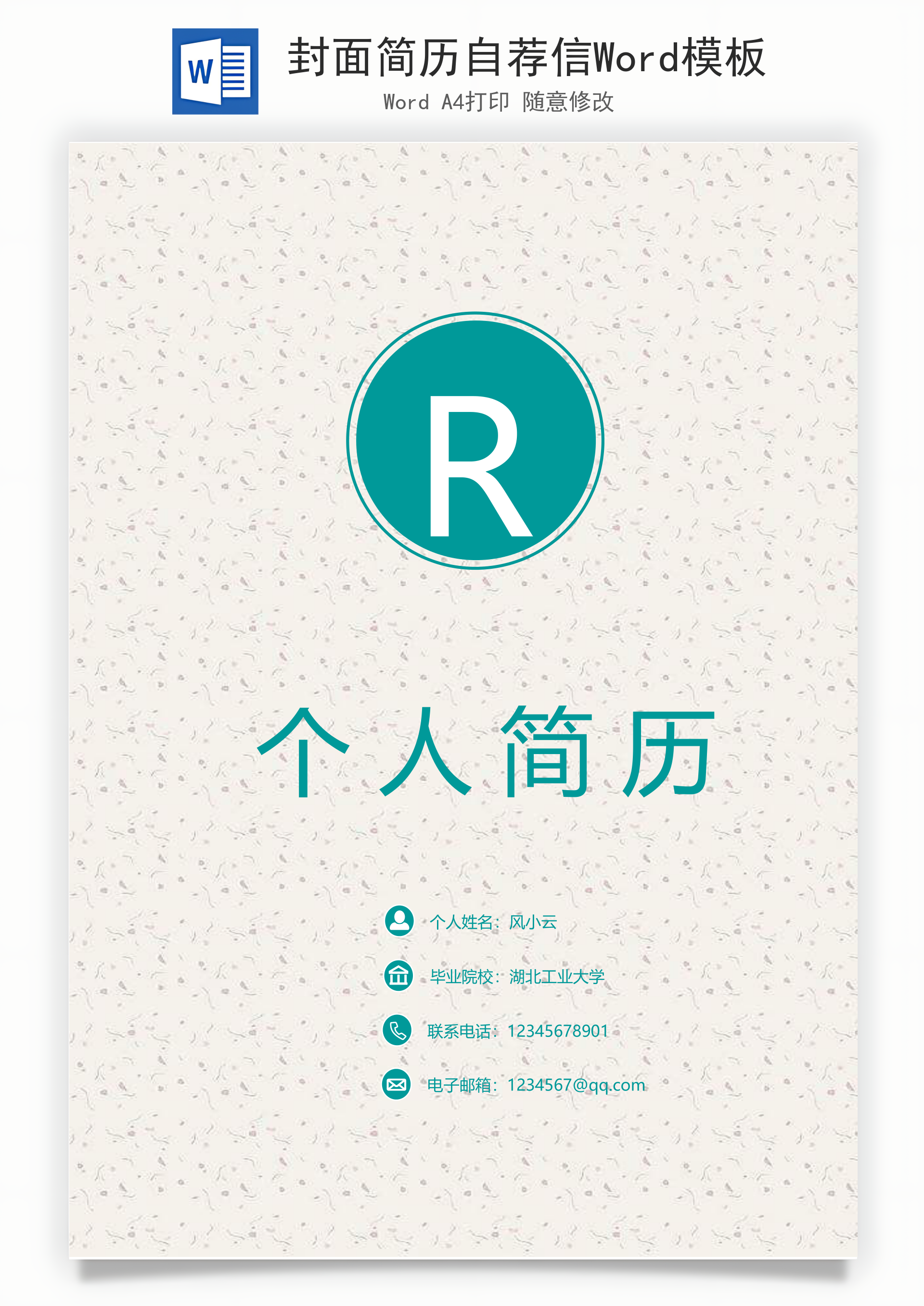风云办公提供封面简历自荐信Word模板下载,格式为 docx,一共3页,作品中文字及图均可以修改和编辑,图片更改请在作品中右键图片并更换,文字修改请直接点击文字进行修改。更多精彩炫酷Word模板,尽在风云办公。