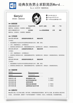 经典灰男士求职简历Word模板