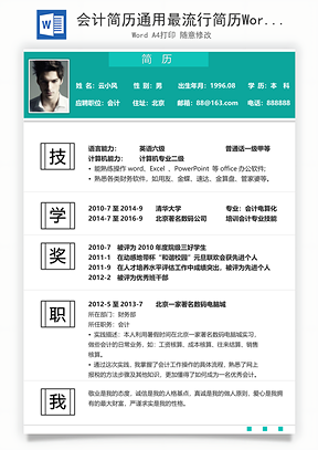 会计简历通用简历Word模板,