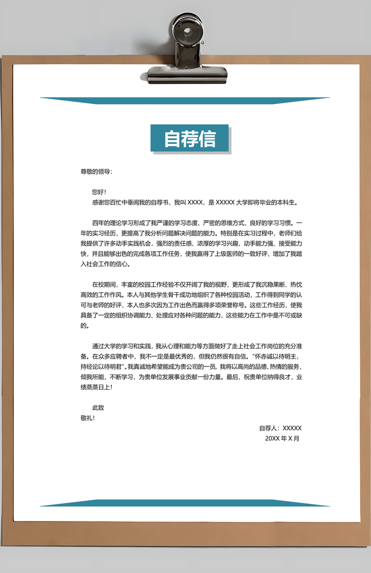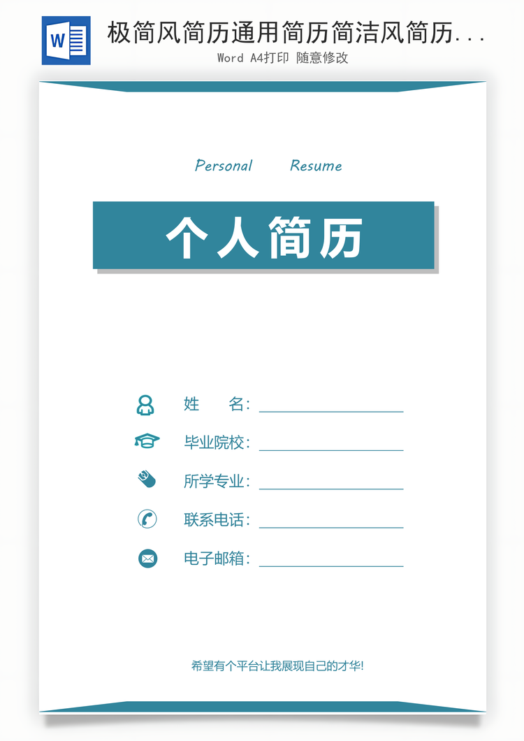 通用简历极简风格创意个人简历设计模板自荐信Word模板